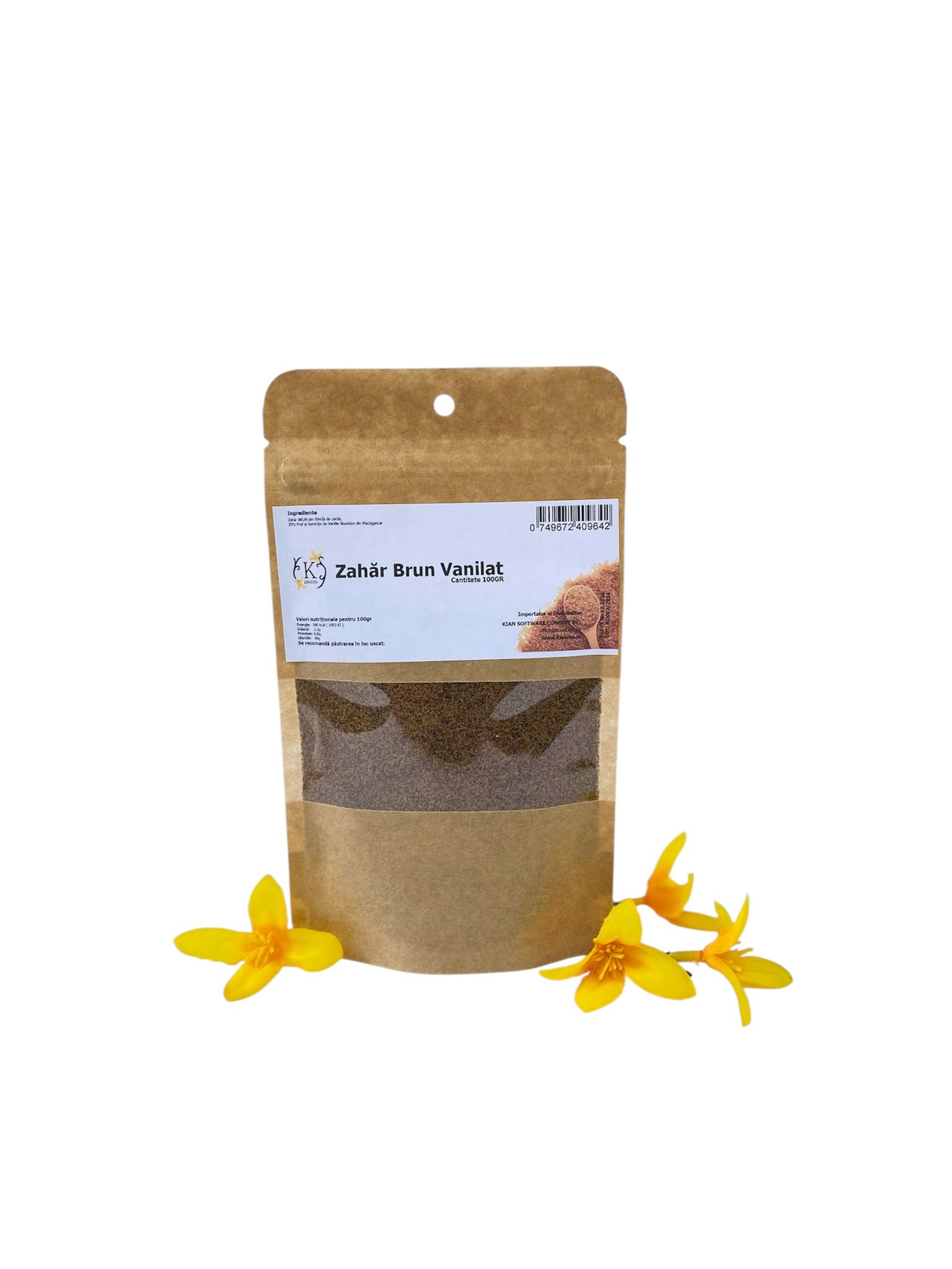 100gr, Zahar BRUN Vanilat, Kraft, Ziplock